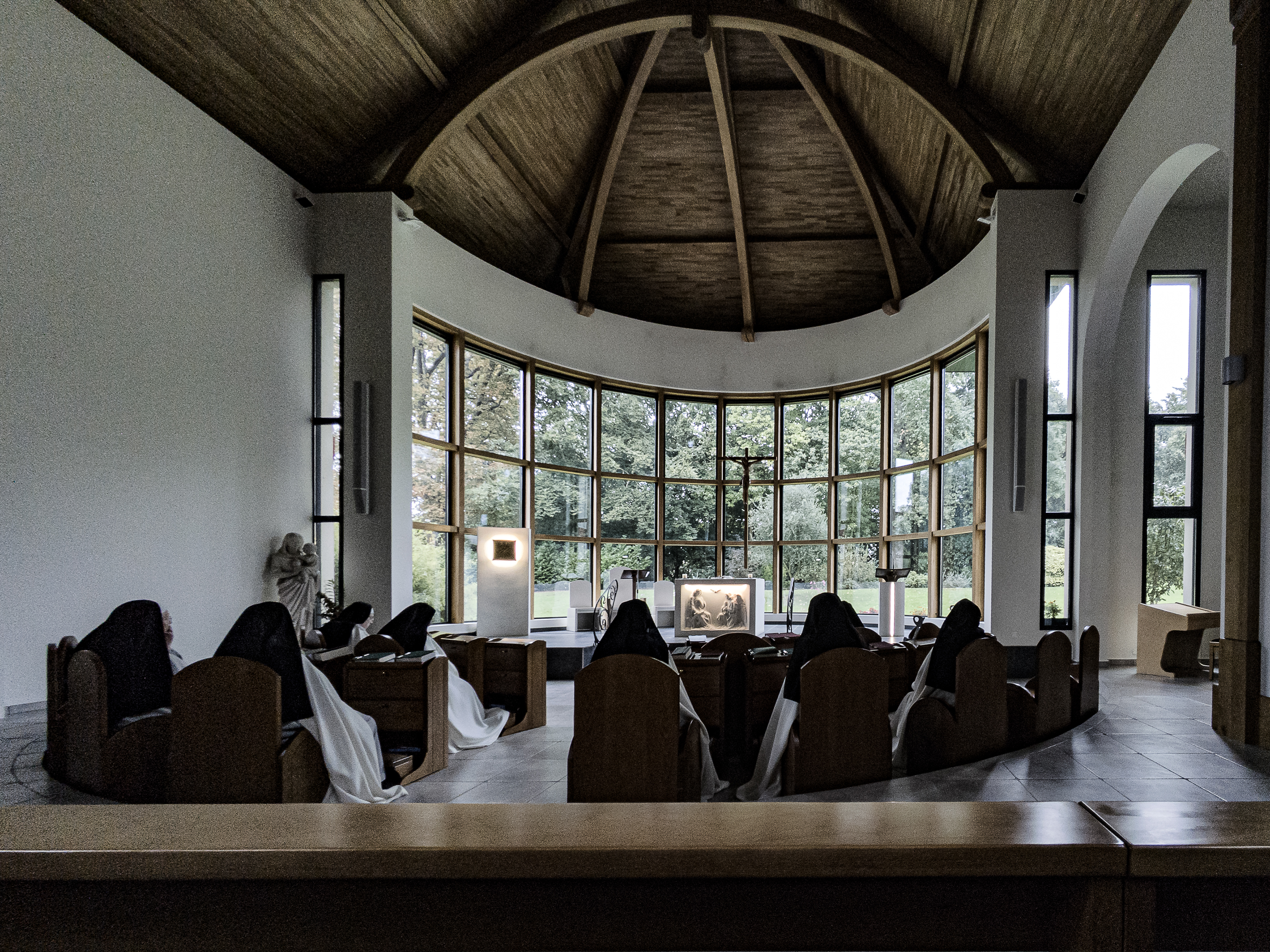 A quelques kilomètres de Caen se trouve le monastère des Soeurs de l'Annonciade. Elles sont très peu en France. L'église s'ouvre largement sur le jardin extérieur ce qui fait de ce lieu un endroit à la fois étrange et fascinant. Magnétique.